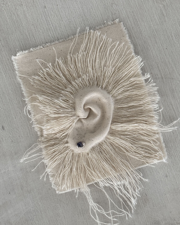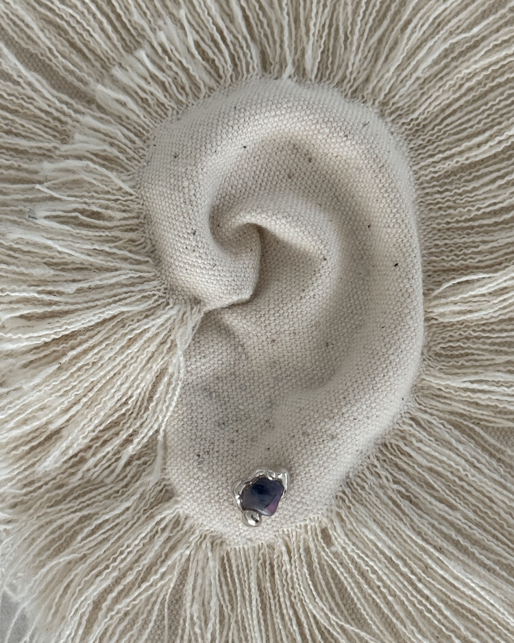 자연의 형태를 닮은 유기적 곡선과 러프 사파이어가 조화를 이루는 스터드 타입 이어링.