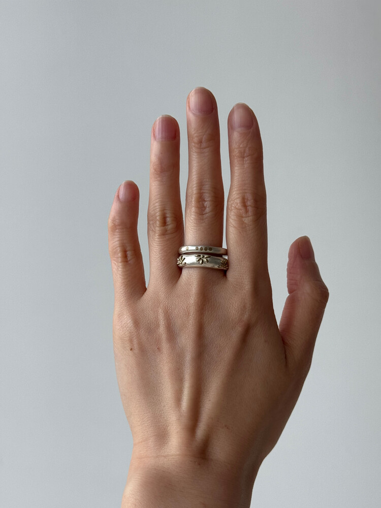 두꺼운 반지는 얇은 반지보다 더 타이트하게 느껴질 수 있습니다.사이즈가 중간일 경우 반 사이즈~한 사이즈 크게 선택하시는 것을 추천드립니다.