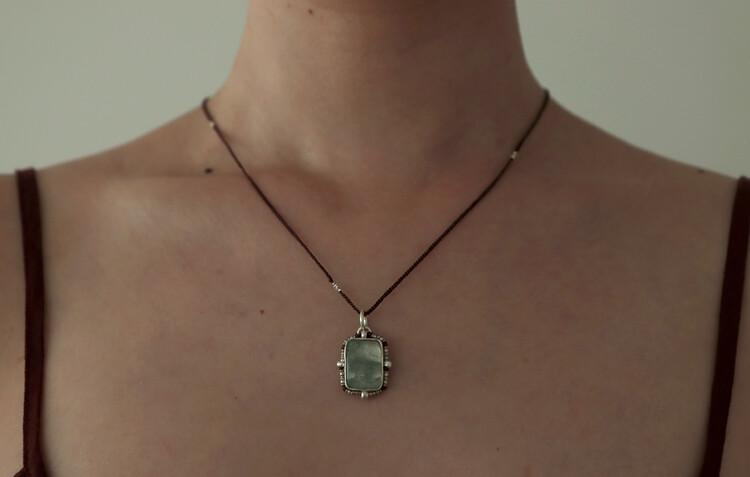 장식에 사용된 비즈는 아프리카 말리의 고대 도시에서 발굴된 희귀 유리, 원석 비즈들로