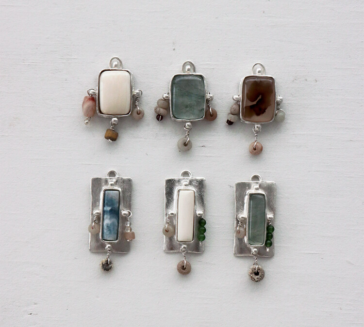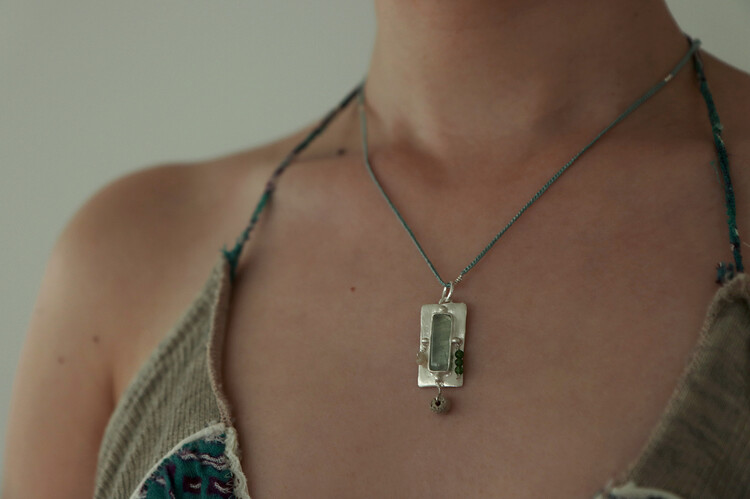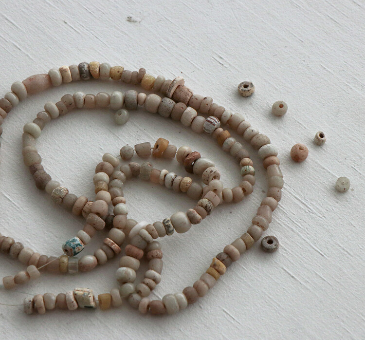 장식에 사용된 비즈는 아프리카 말리의 고대 도시에서 발굴된 희귀 유리, 원석 비즈들로